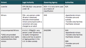 Since the late 1990s, the way we treat minors, unaccompanied children, and families at the border has been governed largely by a court agreement known as the Flores Settlement Agreement (FSA) and number of conforming regulations. At the time of the enactment of the FSA, the now-defunct Immigration and Naturalization Service handled all individuals encountered at the border.