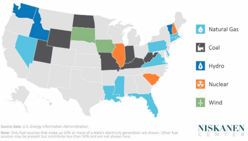 Figure 2: For 26 states, over 50% of power generated from a single fuel source