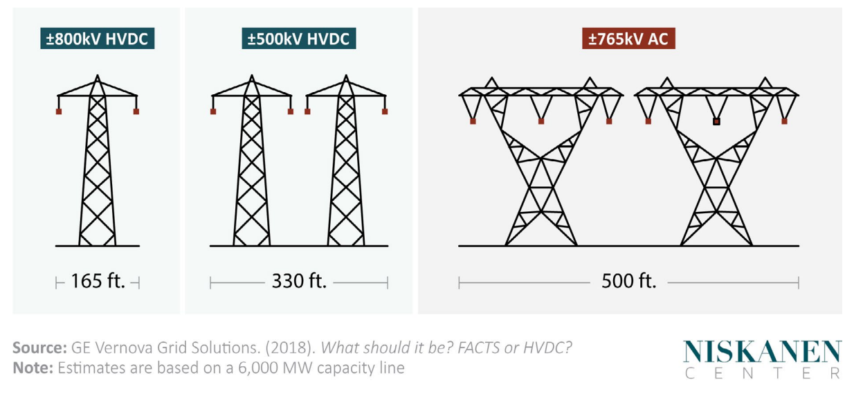 HVDC uses less right of way