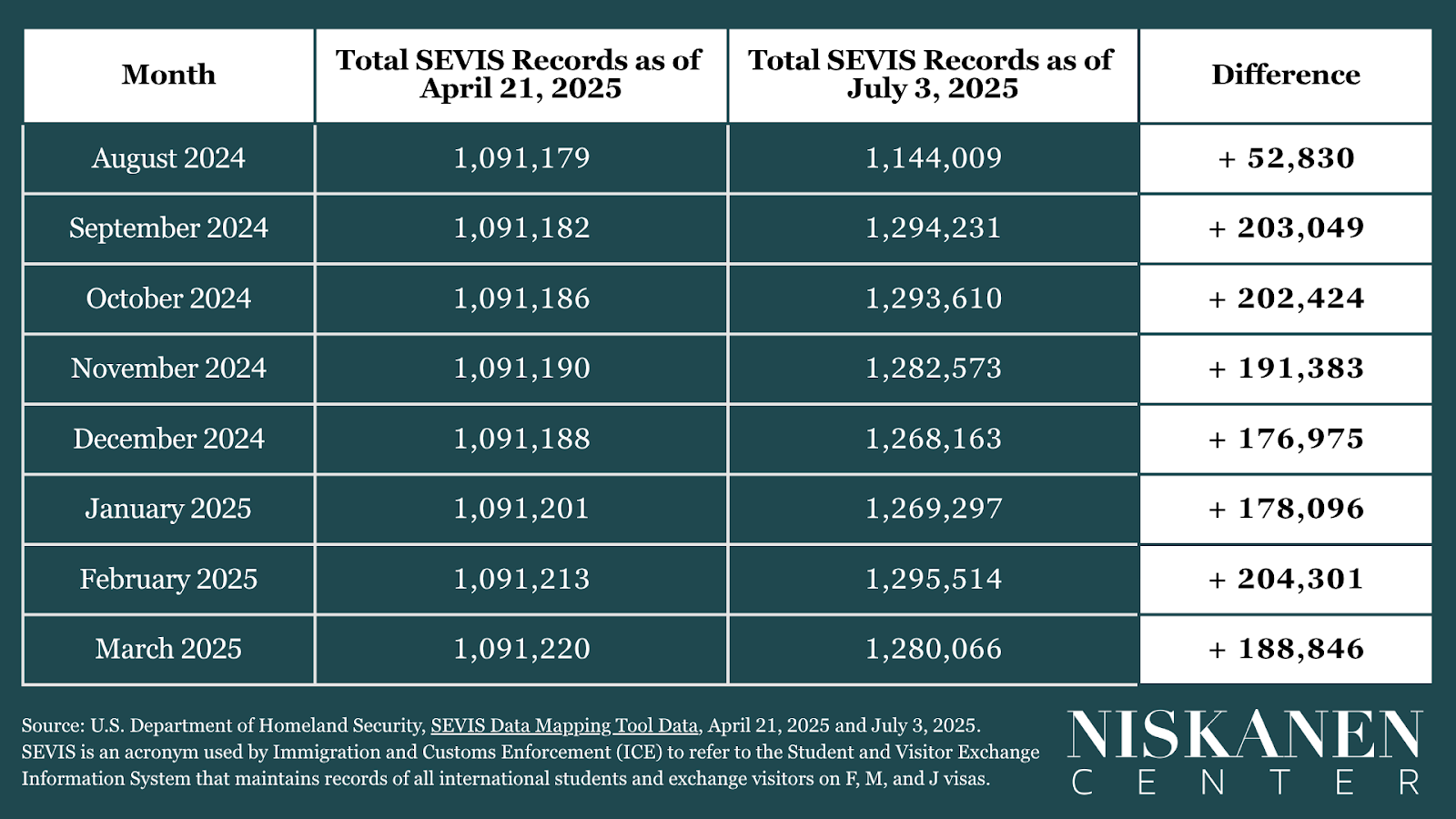 By that time, the Trump administration had already terminated the SEVIS records of over 4,700 international students, threatening their legal status in the U.S. These terminations garnered significant media attention and dozens of lawsuits. As students’ records were reinstated, the attention began to die down, but the data remained unavailable for months. DHS restored the data at the beginning of July, but it is notably different from the data available just months ago.