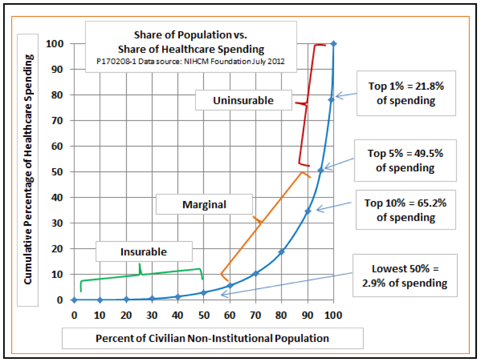 The challenge is made harder still by the fact that insurance — in the traditional meaning of the term — is not an option. A large percentage of cases at the upper end of the curve fail to meet two standards of insurability.