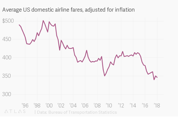 Mergers in the airline industry have left us with only three traditional major airlines. That must lead to monopoly profits, right? In fact, as the Priceonomics blog notes, “six major airlines went through bankruptcy in the 2000s, and from 1979 to 2014, airlines lost $35 billion.” One recent paper in the American Economic Review was simply titled “Why Can’t US Airlines Make Money?” Airfares are also down by about a third over the same period. It is hard to conclude that allowing mergers in a persistently unprofitable industry with falling prices and rising output is really what ails our society.