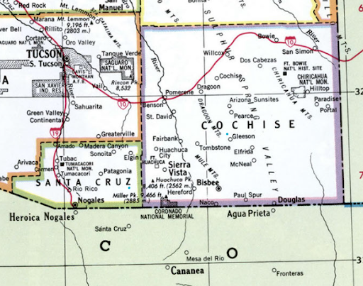 The four counties of Yuma, Pima, Santa Cruz, and Cochise form the Arizona border with Mexico. Three of these counties — Pima, Santa Cruz, and Cochise Counties — constitute the U.S. Customs and Border