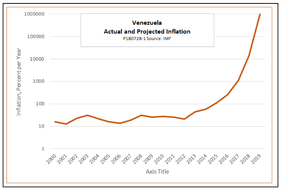 The IMF recently announced that it expects Venezuelan inflation to reach 1 million percent by the beginning of 2019, up from an estimated 13,864 percent this year. Venezuela is no longer just flirting with hyperinflation – it is plunging in all the way.