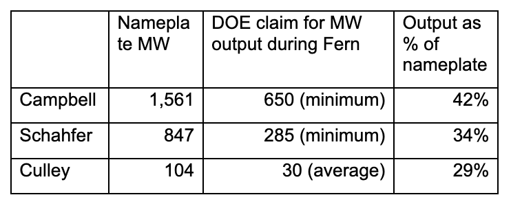 Coal-fired power plants in each region performed close to expectations, with shortfalls of less than 15 percent in all three regions. This overall high performance of this generation type is in stark contrast to the specific coal-fired power plants that Department of Energy emergency orders have unnecessarily kept online for months. Table 2 shows that each of those plants delivered significantly less power than anticipated during the storm.