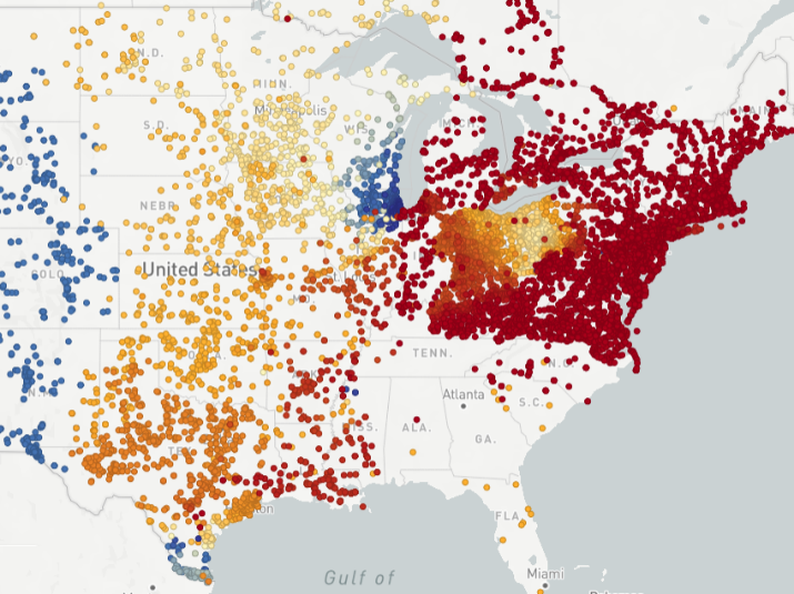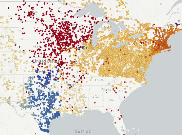 Interregional transmission can smooth these market dynamics and stabilize prices during high-demand events. By strengthening connections between grid regions, transmission allows electricity to flow to areas experiencing shortages from areas with surplus. The longer these transmission lines are, the less likely that the regions at either endpoint will experience the same severe weather at the same time. Figure 1 shows two snapshots from Grid Status’s Nodal Map, illustrating how the price of electricity changed over two days of the storm because the location of the most severe weather moved.