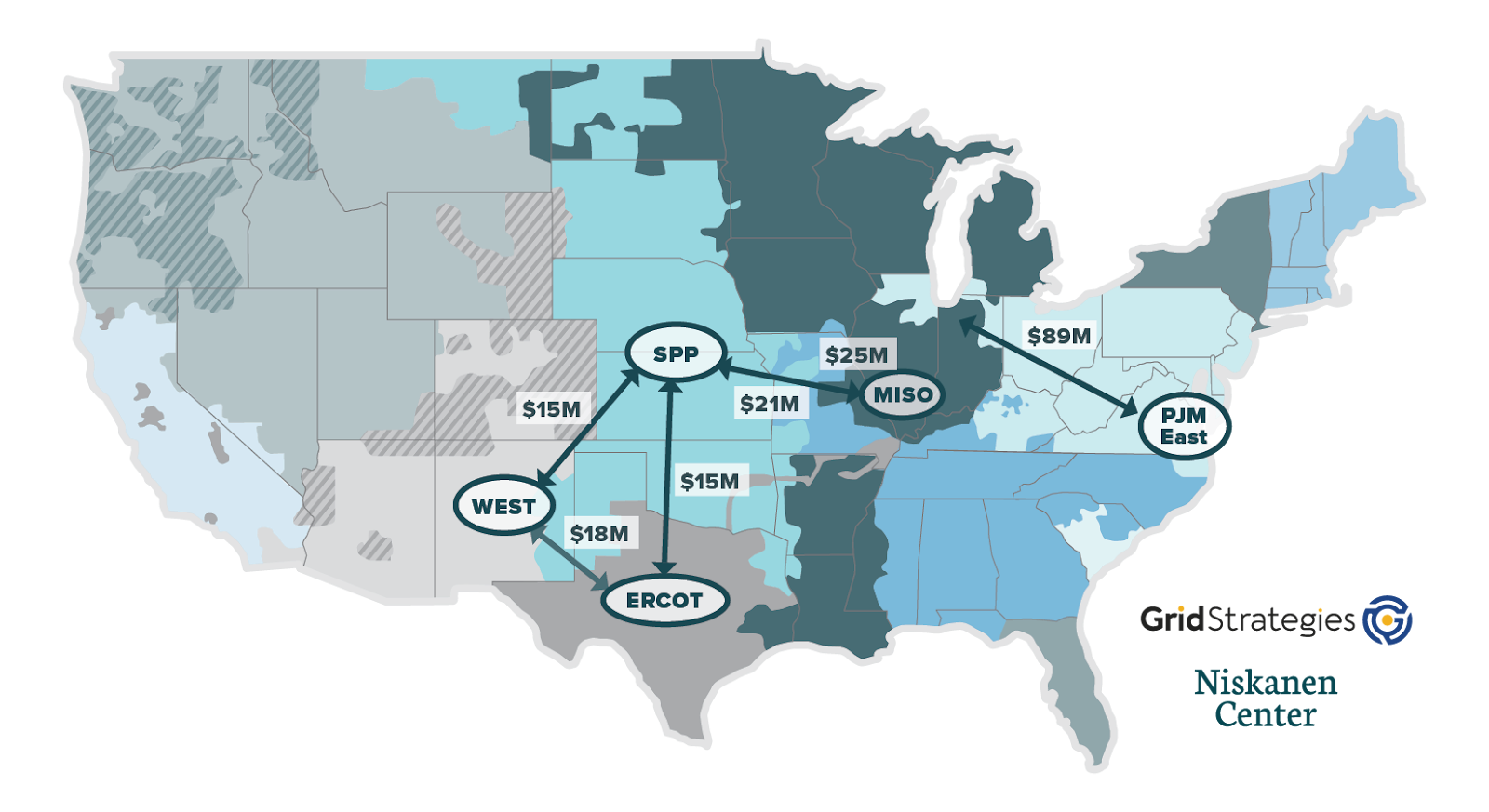 Figure 2: Expanding transmission ties by 1 GW between neighboring grid operators could have captured up to $183 Million in value